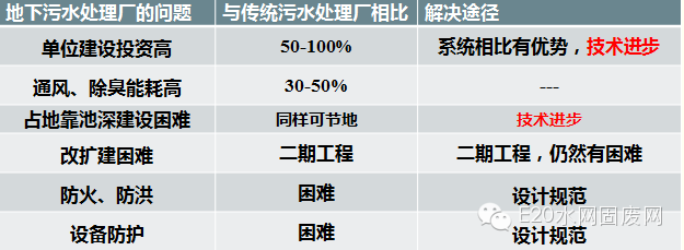 当然,地下污水处理厂还有很多的问题,这里列出了三个技术问题和三个管理问题。
