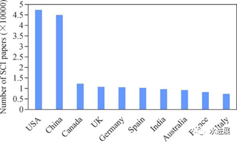 得益于持续增长的远远超过世界其他地区的资金支持,中国现在还拥有水管理领域全球最大的研究团队。从出版物中可以看到中国的创新能力和国际竞争力,中国在水研究领域的 SCI 论文总数仅次于美国。如此卓越的创新能力为中国废水管理模式和处理技术的未来革命奠定了坚实的基础。