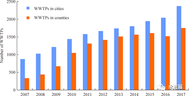 图1 2007-2017 年中国城市污水处理厂数量的增长
