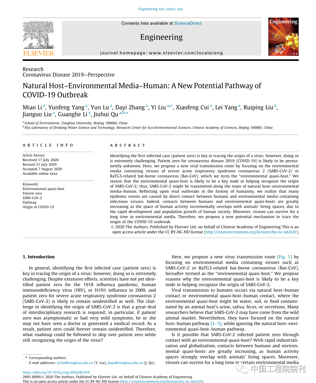 文章来源:《Engineering》 中国工程院院刊 2020-11-05