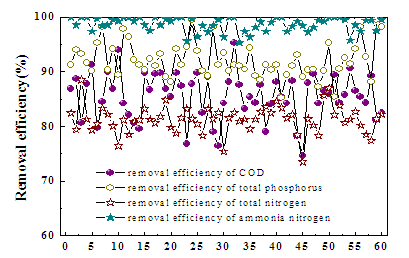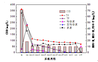 进水范围 (mg/L) | 119-761 | 19-71 | 0-3.9 | 20-75 | 0.48-13.3 |
