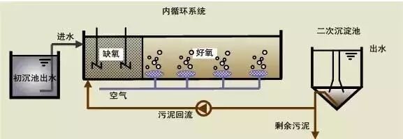 几种污水生物脱氮除磷工艺对比见图1。传统的A/O脱氮除磷工艺(图2)存在两个问题:一是出水总氮浓度(含NH4+、NOX--N)和回流液总氮相同;二是出水的总氮浓度(TN)高。