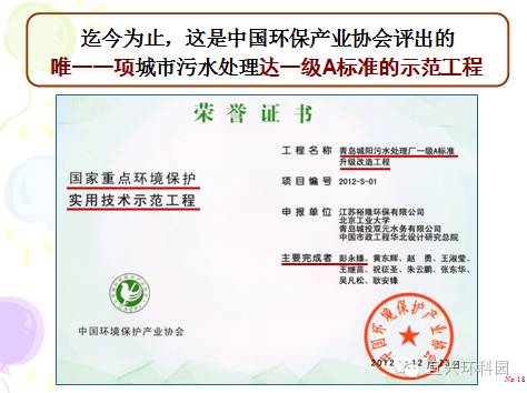 迄今为止,这是中国环保产业协会评出的唯一一项城市污水处理达一级A标准的示范工程。国家环保产品质量监督检验中心检验报告见表4。