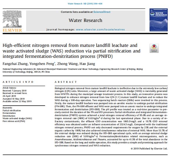 填埋超过五年的成熟垃圾渗滤液通常NH4+-N含量很高,可生物降解的有机碳含量低,碳氮比低(1:1)以至生物处理脱氮存在两个缺陷:1)碳源不足导致反硝化不完全;2) 污水处理过程中会产生大量剩余活性污泥。而剩余活性污泥可通过厌氧发酵过程减量化并产生可生物降解的有机碳源,通过此途径可同时解决碳源不足和剩余活性污泥过量的问题。同时研究报道游离亚硝酸可加速剩余活性污泥发酵过程,但游离亚硝酸预处理一般作为前处理单元与发酵过程分开。那么厌氧发酵与亚硝酸盐还原两个过程能否在同一个反应器内共同出现呢?