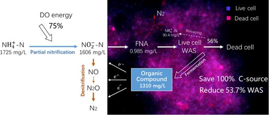 短程硝化-发酵反硝化(PNIFD)工艺可大幅减少能源(25%)和碳源消耗(100%)