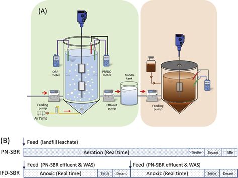 图1 短程硝化-发酵反硝化装置示意图(A)以及运行策略(B)-来自原文