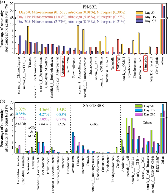 图6.PN-SBR(a)和SAEPD-SBR(b)在属水平上的生物学分类-来自原文