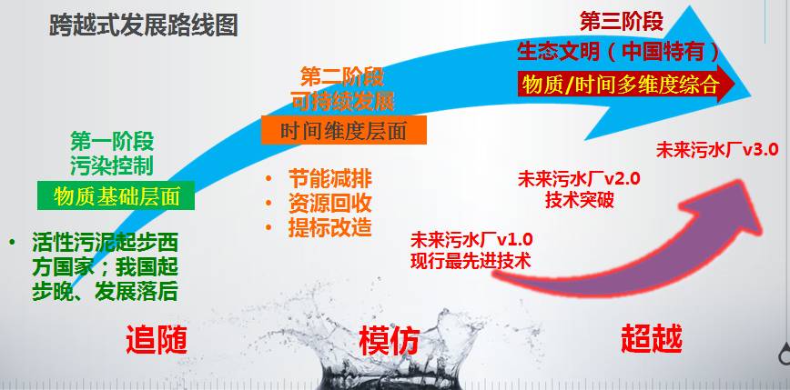 生态文明阶段依赖于可持续发展阶段的技术,在第一代和第二代污水处理工艺基础上实现的。因此我们总结这三个阶段为追随、模仿而后达到超越。