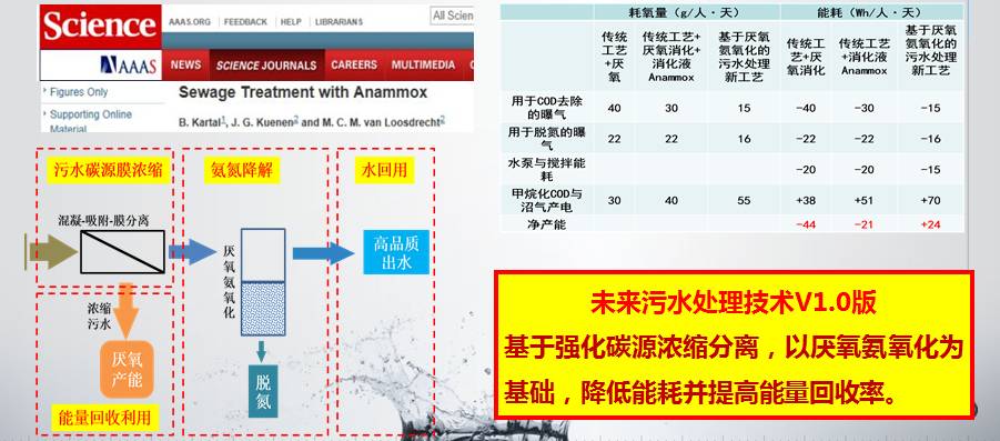 AAAS发表了厌氧氨氧化传统污水处理颠覆性理论,可以实现碳平衡和能量自给。厌氧氨氧化颠覆了传统脱氮过程理论,分别减少能耗和碳源消耗40%,所以全世界范围内都在进行中试,看下一代主流厌氧氨氧化能不能实现。荷兰鹿特丹,新加坡的PUB,美国的DC-water,澳大利的strass都在准备生产性研究。