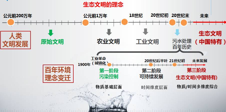 第一阶段污染控制阶段,属于物质基础层面。到后来国际上提出可持续发展,就进入了第二阶段,可持续发展阶段。王凯军认为下一阶段应该是中国引导的生态文明阶段。