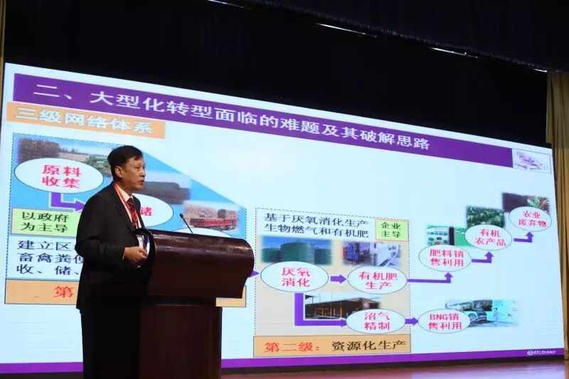 实际上,三年前我们就在山东省发起了 “十万亿”燃气项目的倡议。在与山东省政府对接后,由环保厅落实实施,并于去年正式启动了“山东省畜禽污染防治与资源化三级网络体系构建研究”项目。在该项目中,针对不同环节研究解决问题途径,构建涵盖“收储运-生产处理-产品销售”全链条的“三级网络”体系。第一级网络是指原料的收集、储存、转运系统;第二级网络是指生产处理系统,包括厌氧消化、有机肥生产、沼气精制等;第三级网络是指生物燃气、肥料的销售利用系统。我们认为,构建面向农业废弃物资源化利用的三级网络系统 ,是破解沼气工程大型化转型难题的重要途径之一。