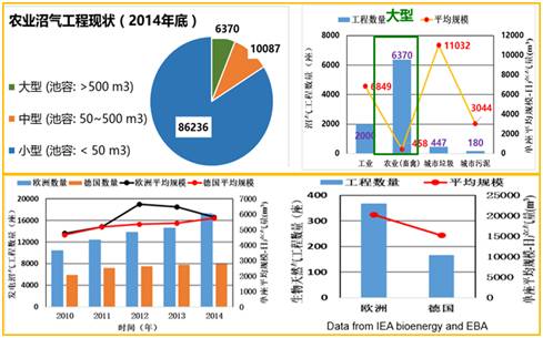 图2 我国、欧洲及德国的沼气工程现状对比