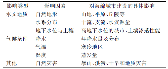表1 海绵城市建设的自然影响因素分类