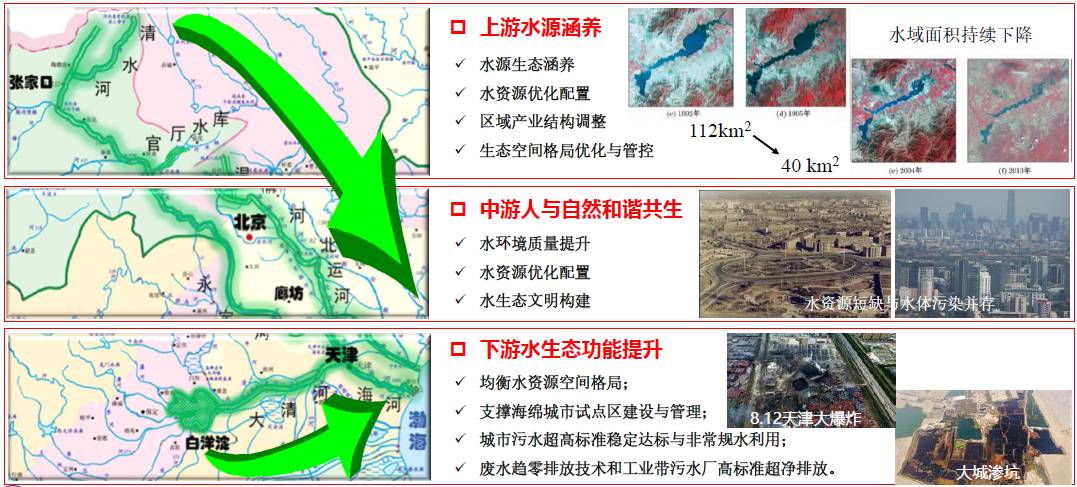 纵观全国八大流域水环境质量状况,位处京津冀的海河流域排在最后一位,问题主要体现在以下几方面:水污染严重、水生态系统严重退化、生态环境承载力严重超载、水资源短缺、生态基流断流问题突出等,选择这个区域极具挑战性。