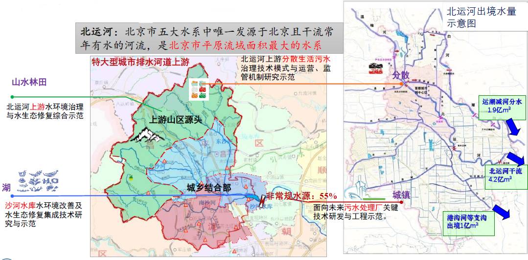 上游生态保护:在北运河生态廊道上游,开展分散生活污水治理技术模式与运营、监管机制研究示范。根据山水林田湖的理念保护水源,形成生态涵养课题。