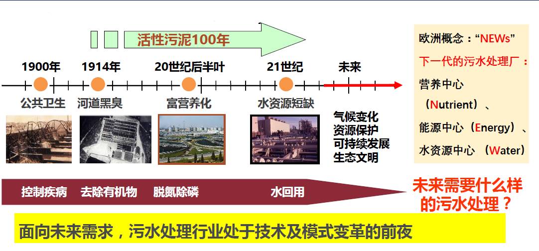 美国国家人文科学院院士小约翰·柯布(John B.Cobb, Jr.)曾撰文指出“直接进入生态文明的发展抉择带给中国一个千载难逢的伟大机会, 这个机会是中国独有的领导世界的机会。……中国应该抓住直接进入生态文明这一千载难逢的伟大历史机遇。”在生态文明理念下,污水处处理技术迎来创新发展新时期,也给我国水处理发展带来新契机。