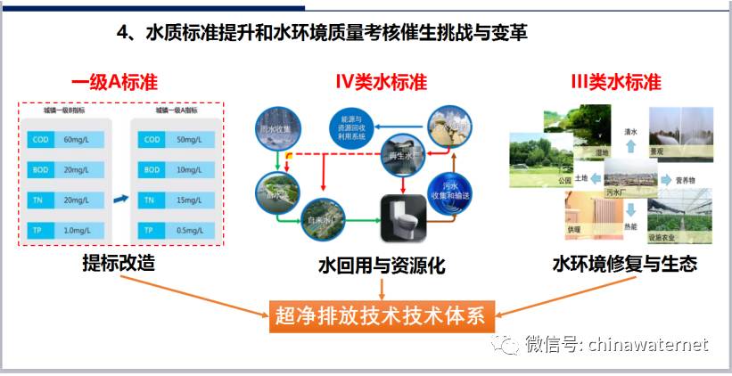 这里的超净排放技术体系,针对北方地区河流主要以再生水为主要补给源难以达到水环境质量标准的现状,针对工业废水、城市污水、河道水等目标,探索超越一级A(深度处理)达到与水环境质量标准相衔接的系列的、经济技术可行的超净处理技术,通过超净排放技术支持水环境质量目标管理和水生态文明建设。