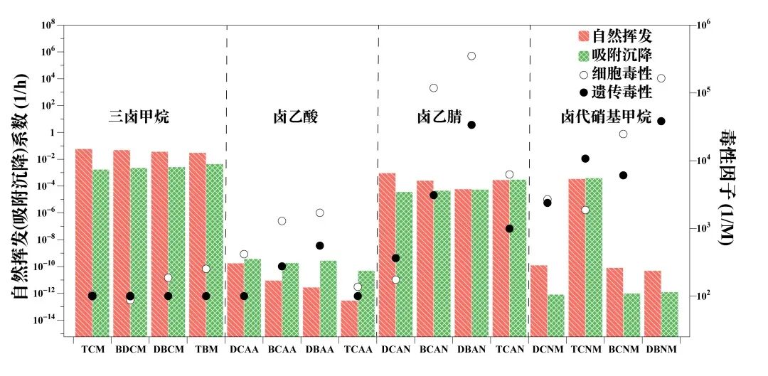 图11 消毒副产物毒性水平、自然挥发和吸附沉降系数(Jin et al., 2012; Wagner et al., 2017)