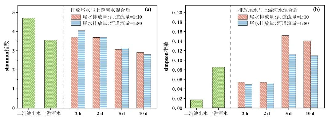 h),但随后逐渐回落,降低至上游河水多样性水平之下(图6,5 d和10 d)。