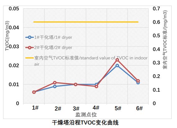 喷雾干燥之所以能够实现在高温状态下不产生VOC,原理在于尽管表面温度能够达到500℃,但是由于内部含有水分,污泥的表面湿度达到50%到60%,这样即使温度高也不会破坏内部结构。通过实测排放烟道里面的VOC的总量,结果表明与室内空气的质量差距很大,远低于室内空气标准,有机组分不会进入尾气。