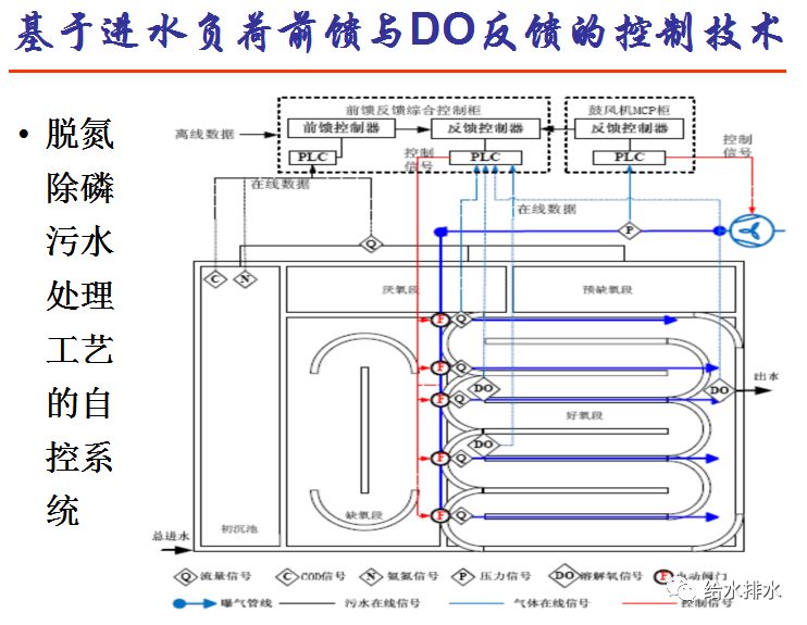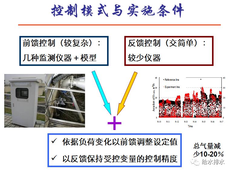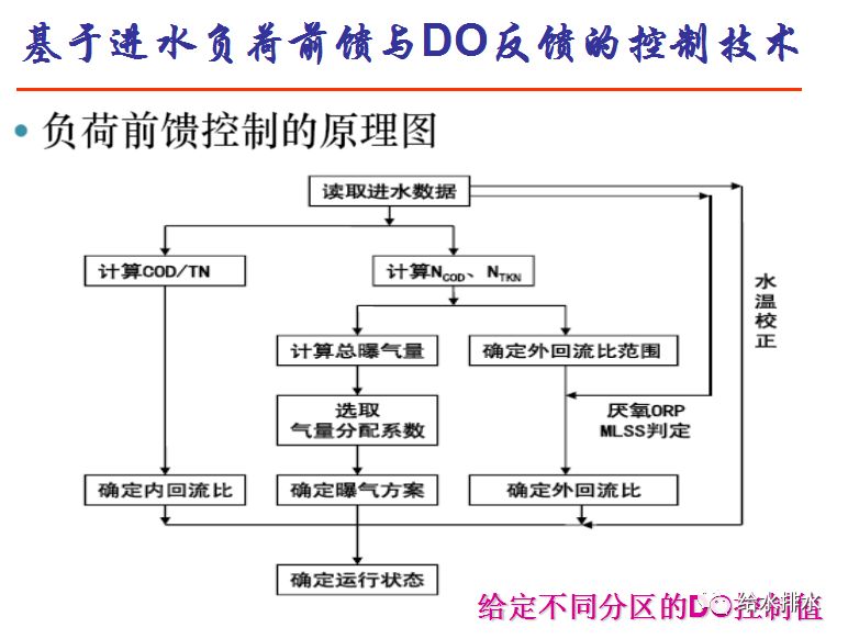 从控制模式总体来讲,要求比较高的处理厂,应该是前馈控制和反馈控制前馈控制,根据来水变化设定残定值,反馈控制,运行仪器运行在设定值的附近。这样一个系统,一般来讲,比较好的是通过对污水处理来给个负荷作为前馈控制,可以通过进水的数据测定计算碳源、氮源控制回流,可以形成前馈和反馈控制相结合的控制系统。