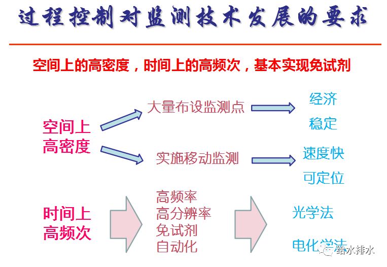 结合到更高标准的要求有一些新的监测技术和控制技术发展。从运行角度,我们是希望有更大量数据能够实时准确告诉我们这个系统状态是什么样。所以一个是在空间密度上可能要增加测试,在时间频次上也要增加测试。既然这样要求,就有两方面,一方面就说我这个仪器比较廉价,经济稳定,能够快速测定。还有,如果频次增高,最好是免试剂频次。