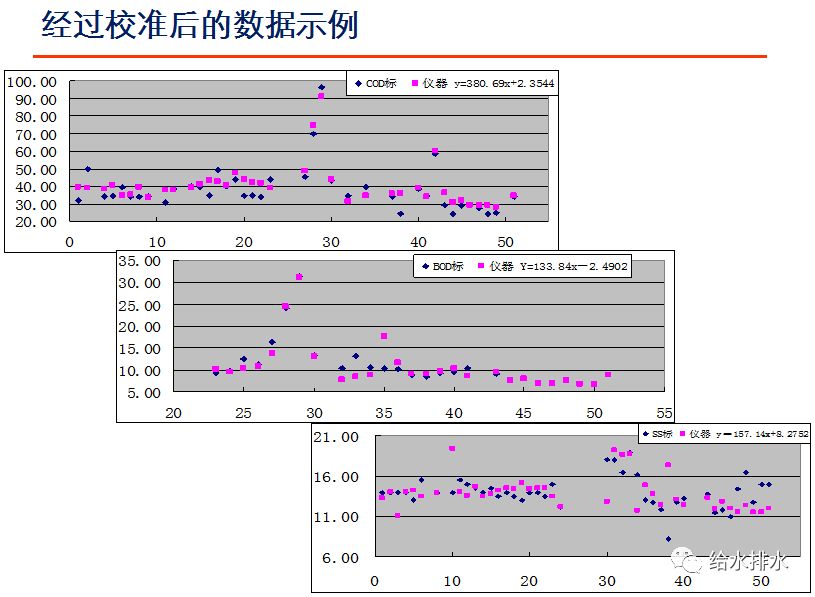 这是这个仪器的外型。这个已经在一些监测站和污水处理厂末端出水进行样机测试,这是测试数据,比如说和数据的比较还有连续测定当中测出仪器的稳定性。