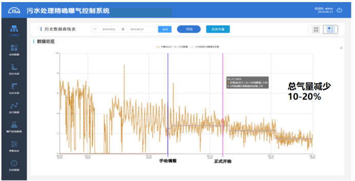 另外,智能化运行控制子系统也会对污水处理厂的除氮除磷进行控制,控制包括曝气池供气量、内回流量、外回流量、污泥排放量以及加药量等环节。