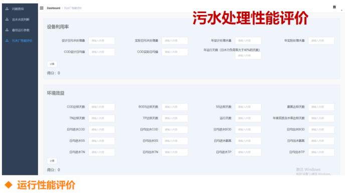 污水处理厂性能评价界面,是根据污水处理厂的评价指标体系,建立的评价软件,可以对污水处理厂运行状态进行评价和分析。