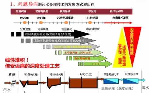 从针对一级A的提标改造、到准IV类水达标,再到饮水级别的高品质回用,随着污水处理及回用标准的提高,水处理工艺的性能要求不断上升。令人望而却步的是,同步上涨的处理费用和系统的复杂性。传统再生水处理(如IV类水提标改造)的目标往往是通过水质提升进一步削减污染物排放,从而提升区域水环境质量。近年来有研究认为,在当前我国水环境治理阶段,在污染物削减层面考虑到污水工艺不断升级的边际削弱效应,加强管网系统的建设维护、实现雨污分流及更高水平的污水收集,比进一步提升污水再生水标准具有更高的投资回报率和更显著的环境效应。