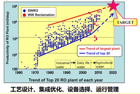 1、膜中心的核心在于反渗透膜堆(train)和膜元件两个层面实现大型化