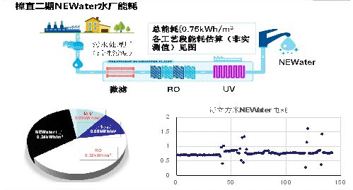 为应对大规模海水淡化的需求,以色列IDE公司曾在工程设计中提出“三个中心”的理念,即膜中心、泵中心、能量回收中心。北控水务在樟宜二期项目中自觉和不自觉地践行了“三个中心”的设计理念。樟宜二期NEWater部分的电耗在产能为70%时仅仅只有0.75度电/m3,反映到RO部分的电耗只有0.3度电/m3。考虑到新加坡独特的气候和水质条件,这也意味着一旦中国应用这个工艺,新生水的价格可以大幅度的降低到一个非常有竞争力的水平。因此,双膜工艺的能耗能降到这个水平,非常值得我们关注。