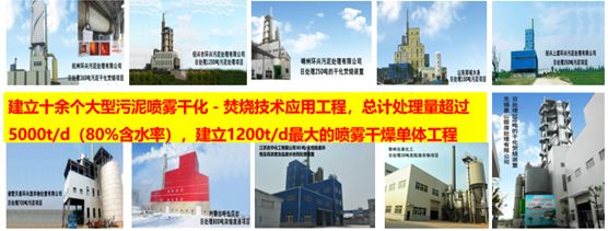 国产化的污泥处理设备不多,我们课题组用了近十年的时间,建立了十余个大型污泥喷雾干化-焚烧技术应用工程,总计处理量超过5000t/d(80%含水率),建立1200t/d的喷雾干燥工程,这也是目前行业内最大的污泥喷雾干燥单体工程。