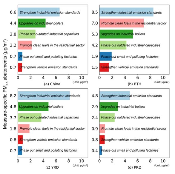 图2. 2013至2017年重大措施对全国空气质量改善的贡献(Zhang, Q. et al.,2019)