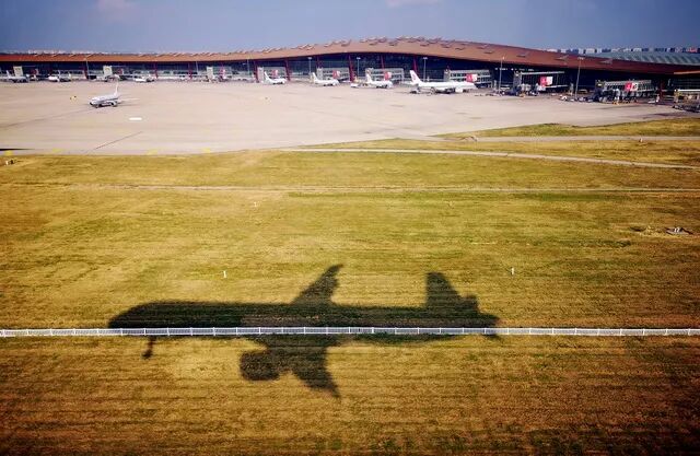 9月24日,一架国航班机即将降落在首都国际机场T3航站楼。摄影/章轲