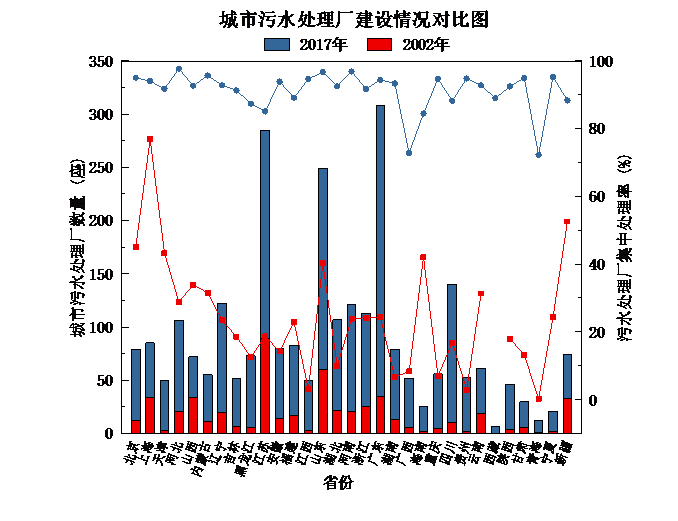 图3 城市污水处理厂建设情况对比图(2002年与2017年)