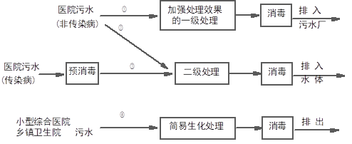 (2) 处理出水排入自然水体的县及县以上医院采用二级处理;