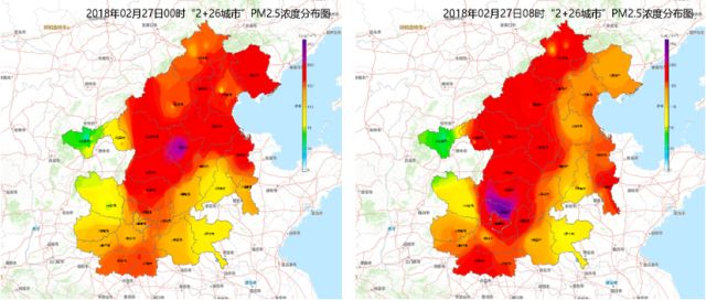 图1 “2+26”城市2月27日PM2.5浓度分布图