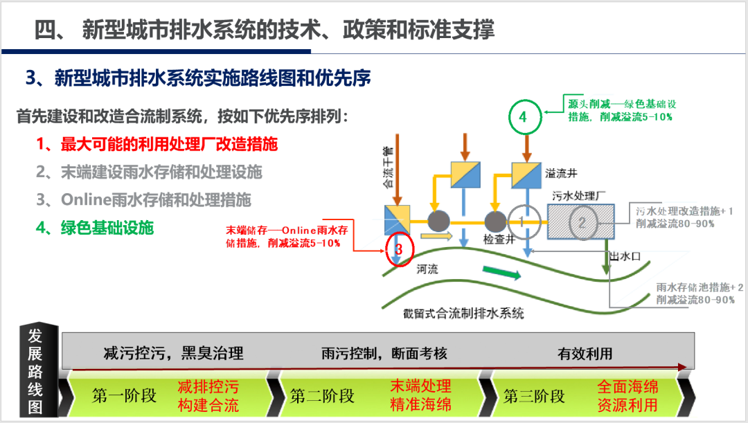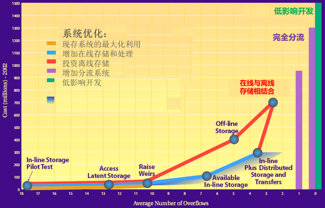 大概统计一下,一个中等城市海绵城市是百亿级投资,分流制改造是十亿级投资,而合流制投入是一个亿的投资,技术经济比选下肯定是合流制最佳。加拿大一个城市也做过系统对比,发现海绵城市投资是最高的,完全分流是第二,而利用污水厂来提效的效益最高的。