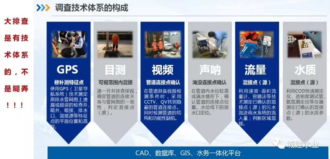 第四,一定要做实系统排查,这是“提质增效”的前提:查清、查准问题是为了“对症下药”,特别是黑臭水体整治初期一定有重点、有针对性地开展排水管网问题的排查;以发现关键问题、影响大的问题为突破口,先重点,后全面。