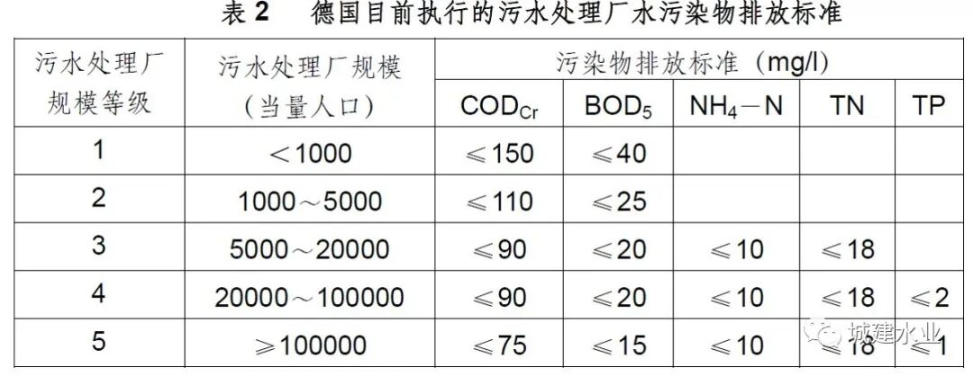 德国按照规模等级确定的污水处理厂排放标准