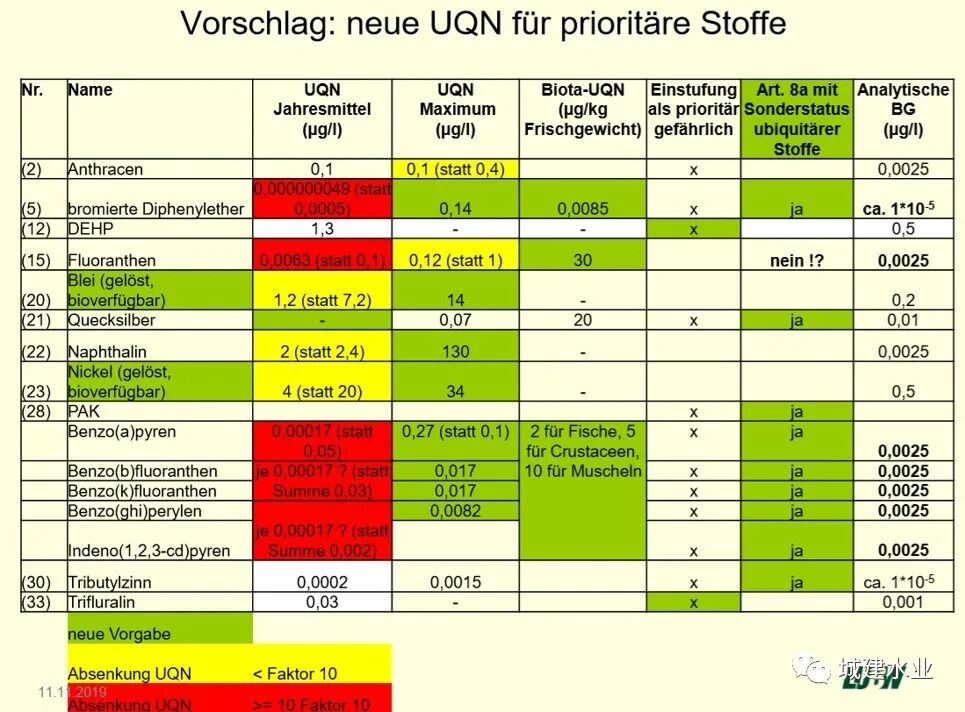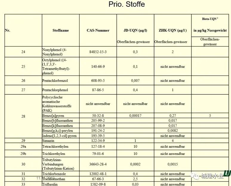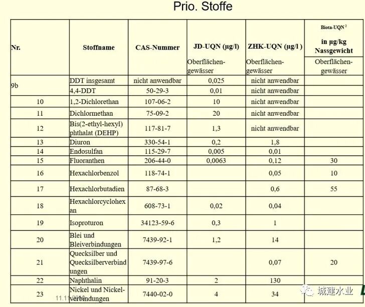 德国对水环境质量的评价: