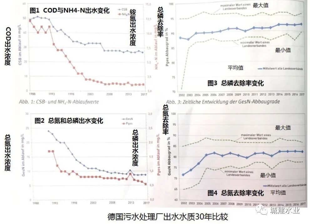 德国污水处理厂出水水质从1988年至2004年出水中污染物浓度持续下降,这与德国1990年开始要求5000当量人口规模以上污水处理厂必须除氮,20000当量人口规模以上污水处理厂必须除磷要求有密切关系。