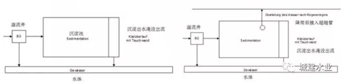 雨水溢流池:在合流制中带有池子和具有净化溢流水功能的储存,和/或者沉淀空间设施。