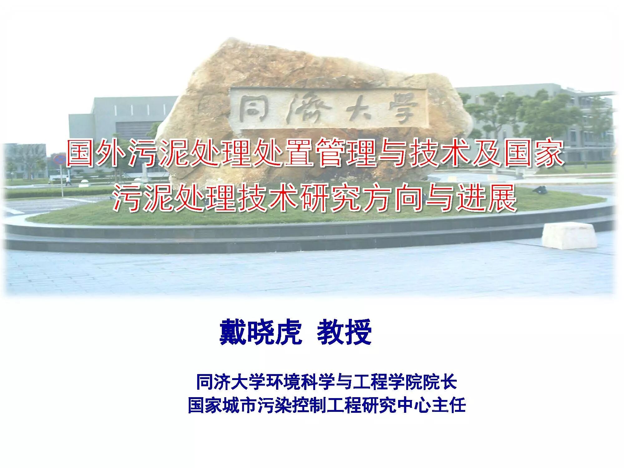 2015年10月21日上午,在“城市污水处理厂工艺设计与节能降耗管理技术培训班(污泥专题)”课堂上,同济大学环境科学与工程学院院长戴晓虎教授为我们带来了《国外污泥处理处置管理与技术及国家污泥处理技术研究方向与进展》课程。以下是培训班PPT内容,与大家一同分享。