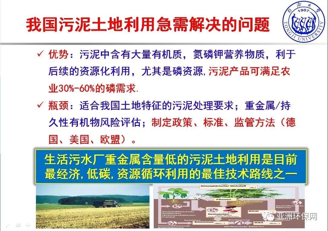 污泥土地利用的价值,其中最为重要的体现在于其中的有机质,能对土壤起到营养土的作用。特别是磷资源,作为人类可持续发展重要战略资源,现在可开采的磷矿,仅仅只有几百年,也就是说未来人类活动需要的磷将全靠二次磷资源,因此污泥是很好的途径,这也解释了德国为什么通过污泥焚烧把污泥灰中的磷溶解再回收回来。当然在这个过程中,土地利用还要克服的基础工作包括重金属、持久性有机物、土地整体风险评估、监管手段等诸多方面。目前,欧洲已经做了大量的工作,值得我们借鉴。不过,和发达国家相比,中国还有其特有的泥质特征,以及环境容量的限制,所以也需要建立我们自有的技术和管理体系。相信待到这些问题都能解决之时,我国的污泥处理处置会带来一个新的面貌,释放更大的市场空间。