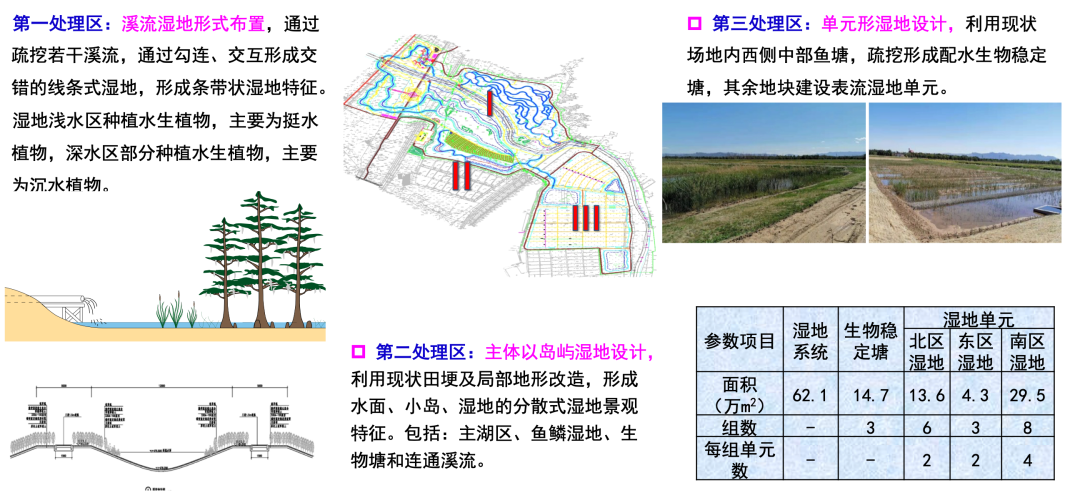 湿地建设划分为三个区域: