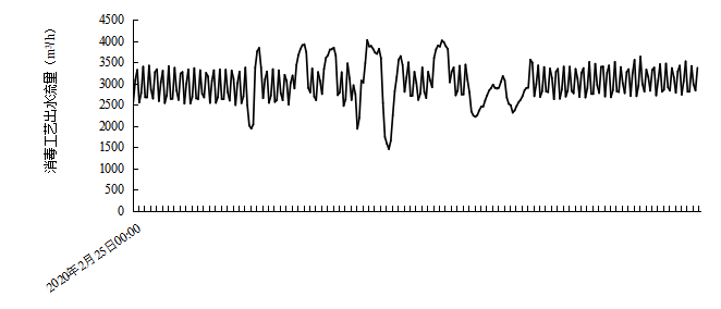 图7 某城镇污水处理厂消毒工艺出水流量瞬时曲线